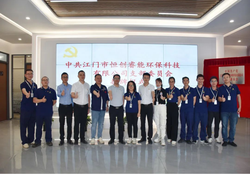 “二十大”期間,古井鎮黨組織再添新生力量。10月21日下午,江門市恒創睿能環保科技有限公司黨支部正式揭牌成立。區委組織部副部長、區委兩新工委書記黃文,古井鎮黨委副書記陳思亮,古井鎮黨委委員、鎮人大副主席陳國源以及新成立的兩新黨支部書記、黨員等參加揭牌儀式。