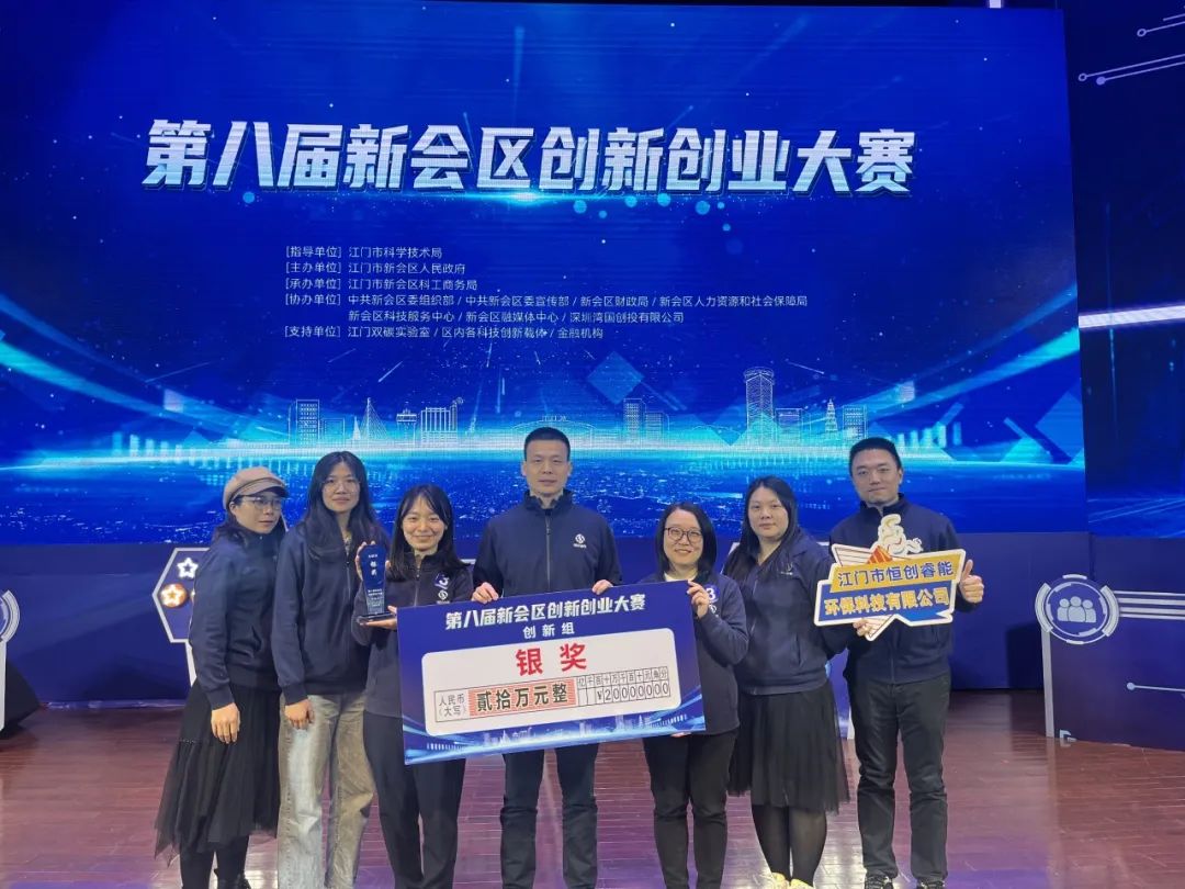 2023年12月25日,第八屆江門市新會區(qū)創(chuàng)新創(chuàng)業(yè)大賽總決賽在新會人民會堂舉行。經過層層比拼,江門市恒創(chuàng)睿能環(huán)保科技有限公司一路披荊斬棘,最終脫穎而出,以總決賽第二名的好成績勇奪銀獎,并獲得20萬元大賽獎金。
